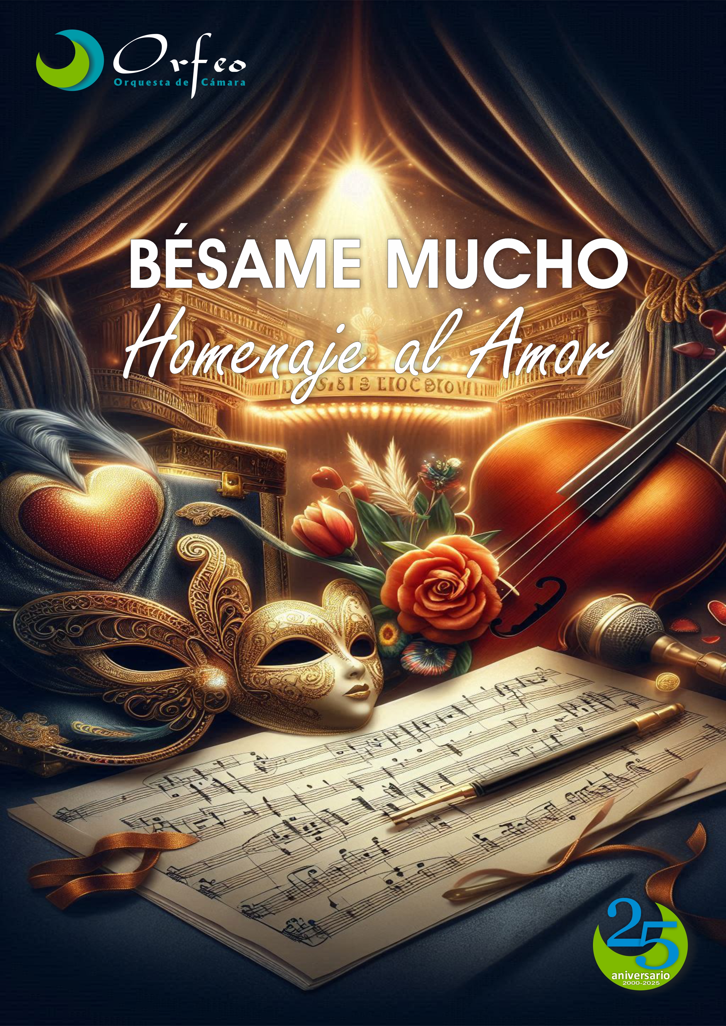 Es un recorrido musical, en versión de orquesta de cuerda, por diferentes canciones que representan un verdadero homenaje al Amor. Una selección de boleros, baladas románticas, música de cine, R&B (rhythm and blues), Country pop and rock, Musicales, Ópera y Zarzuela, Música española, Pop-rock internacional, etc que están en nuestra memoria colectiva y que expresan el amor a través de la música. Las relaciones humanas son la fuente del amor. Aprendemos a amar por medio de la relación que establecemos con los demás, ya que las experiencias compartidas fortalecen los vínculos emocionales. A la vez, las relaciones de calidad se forman en la práctica del buen amor. La Orquesta de Cámara "Orfeo", con sede en Ciudad Real, fue creada en el año 2000 y en el año 2025 celebra su 25º Aniversario. Ha sido incluida en el “Libro de Oro de la Música en España” desde 2005 y en “The Performing Arts Yearbook for Europe”