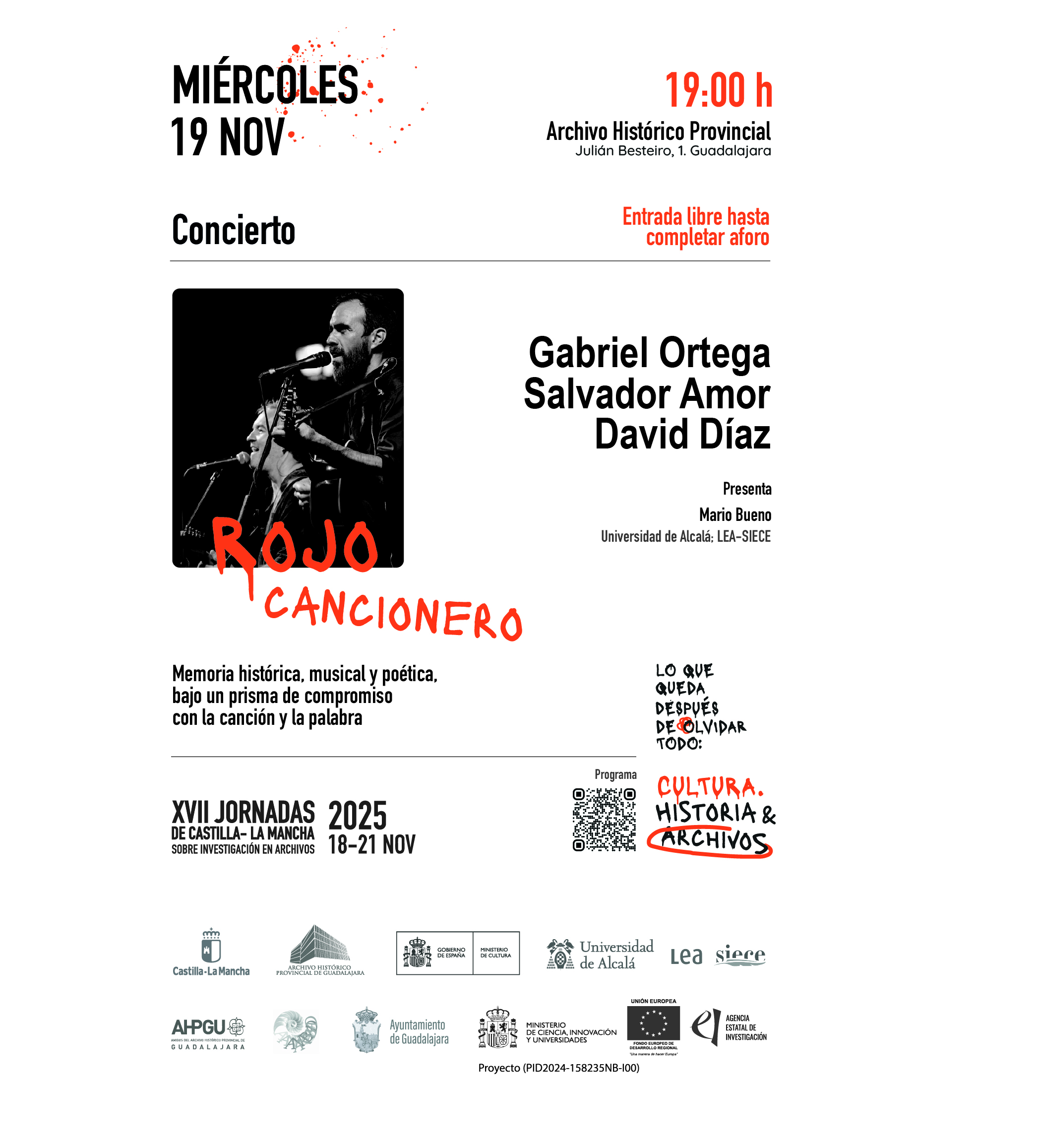 Concierto. Rojo cancionero. XVII Jornadas de CLM sobre investigación en archivos.