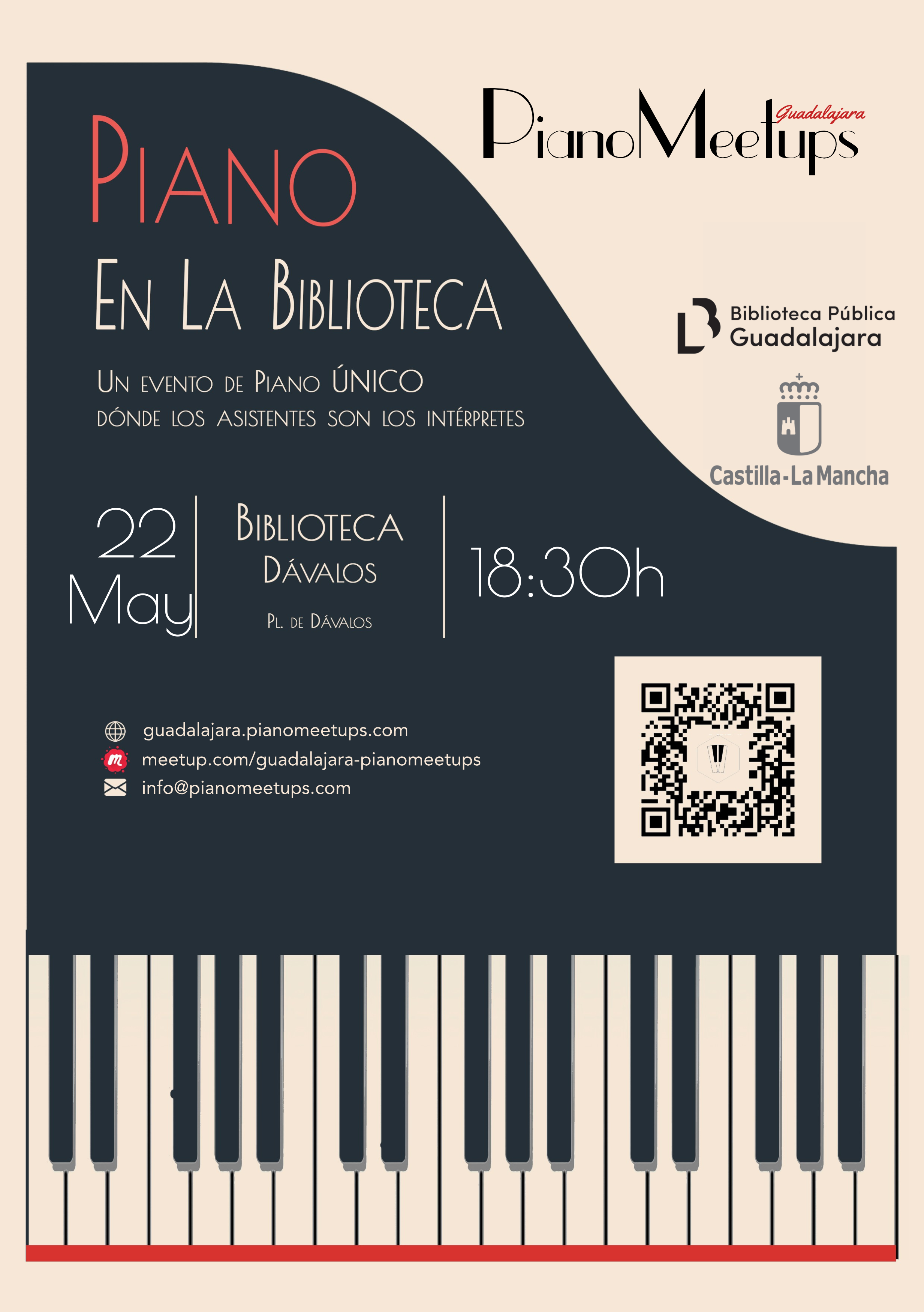 Guadalajara PianoMeetups es una iniciativa sin ánimo de lucro, que busca crear una comunidad de entusiastas del piano, mediante actividades y eventos. Organizamos eventos periódicos en un auditorio con un piano de cola donde los asistentes son los propios intérpretes. En estos eventos interpretamos las obras que nos mueven, que estamos trabajando y por el placer de hacerlo. El único requisito es amar la música y el piano, da igual el estilo, el género o el nivel de las piezas, lo importante es compartir en un espacio sin juicios ni presión.